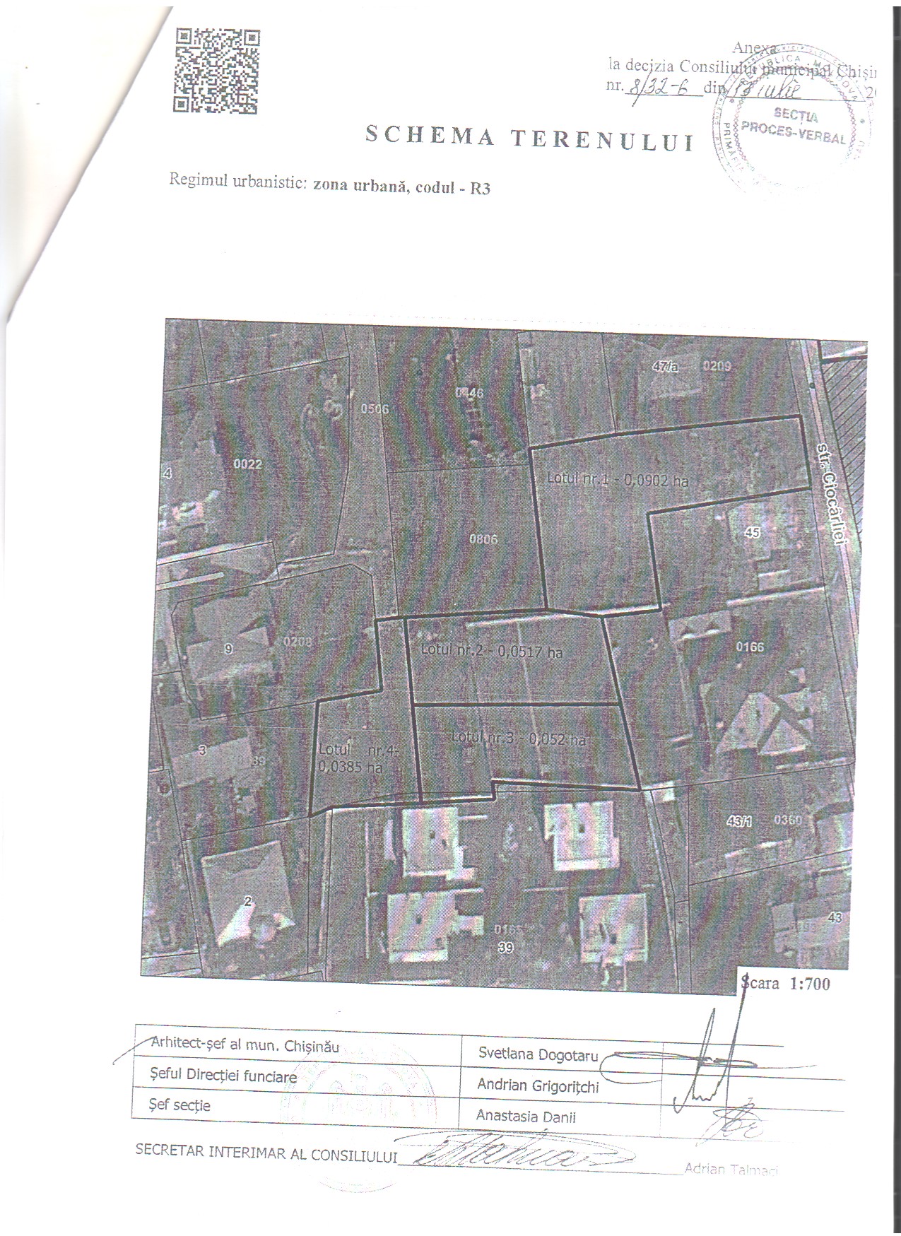 Descrierea Lotul: 10-V Locaţie: mun. Chişinău Sectorul: Centru Adresa: str. Nichita Smochină nr. cadastral: 0100216.1017 Destinație: Construcție locativă, zona R3 Prețul inițial: 1 500 000 lei Suprafața: 0,0520 ha