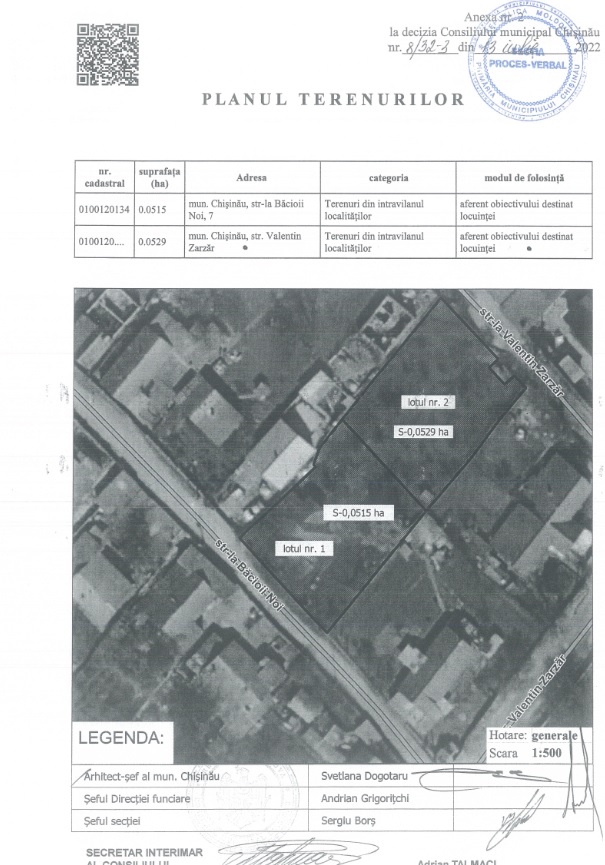 Descrierea Lotul: 18-V Locaţie: mun. Chişinău Sectorul: Botanica Adresa: str. V. Zarzar nr. cadastral: 0100120.1150 Destinație: Construcție locativ-individuală, zona Re Prețul inițial: 500 000 lei Suprafața: 0,0529 ha