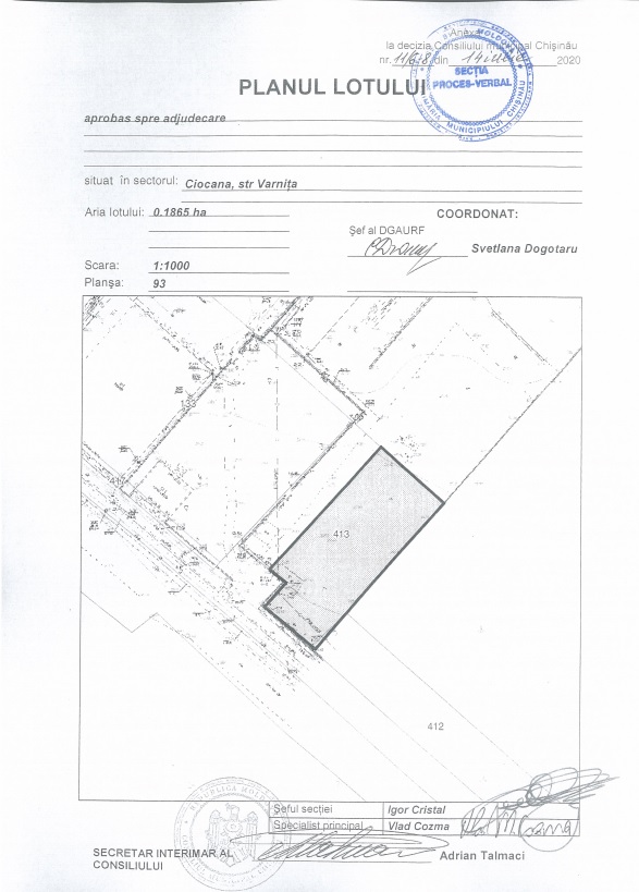 Descrierea Lotul: 1-V Locaţie: mun. Chişinău Sectorul: Ciocana Adresa: str. Varnița nr. cadastral: 0100302.954 Destinație: Depozit de produse angro Prețul inițial: 3 000 000 lei Suprafața: 0,1865 ha