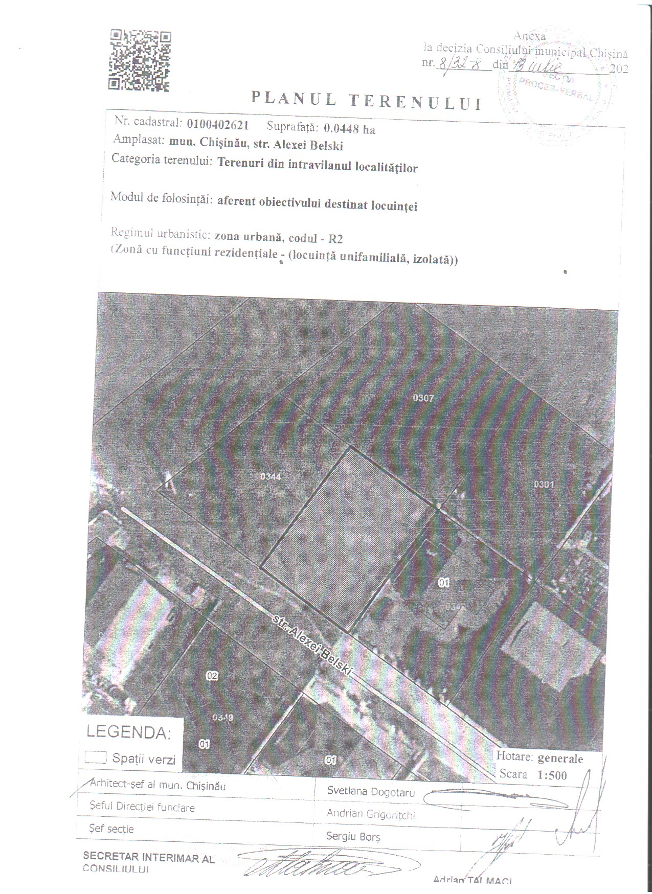 Описание Лот: 11-V Расположение: мун. Кишинёв Район: Рышкановка Адрес: ул. А. Бельский кадастровый номер: 0100402.621 Назначение: Индивидуальное жилое строение, зона R2 Площадь: 0,0448 га. Первоначальная цена: 1 000 000 лей