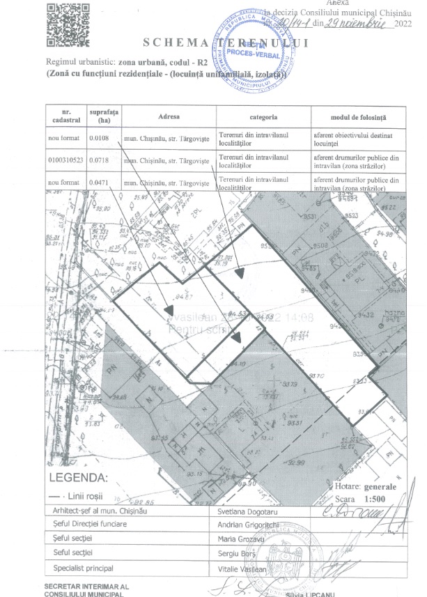 Описание Лот: 7-L Расположение: мун. Кишинёв Район: Чеканы Адрес: ул. Тырговиште Кадастровый номер: 0100310.523 (часть участка) Назначение: Благоустройство Площадь: 0,0471 га Срок найма: 10 лет Годовая плата: 9 431 лей Первоначальная цена: 100 000 лей